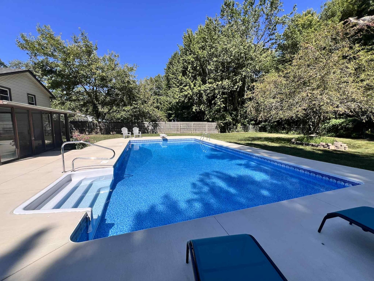 ¡Esta amplia casa de Amherst es tu escapada perfecta! Duerme cómodamente 16 con 6 dormitorios, 11 camas y 3 baños. ¡Prepara banquetes en la impresionante cocina, relájate con una película en el teatro del sótano y desafía a los amigos al ping pong y los dardos! En el exterior, la piscina resplandeciente atrae, mientras que la chimenea prepara el escenario para noches acogedoras. El bar al aire libre te permite preparar bebidas refrescantes mientras asas la cena, y el columpio mantiene entretenidos a los más pequeños. ¡Los recuerdos están garantizados en esta escapada familiar!