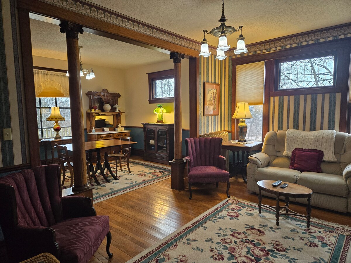 Esta histórica casa de Ironwood cuenta con carpintería original, pisos de madera originales, habitaciones extragrandes y encanto del viejo mundo. Esta casa se encuentra a menos de 10 millas de 5 estaciones de esquí, a menos de una cuadra de los senderos para motos de nieve y el sistema de senderos no motorizados Iron-Belle. Restaurantes elegantes, museos, tiendas en el centro de la ciudad, espectáculos de teatro en vivo y entretenimiento nocturno a una milla.