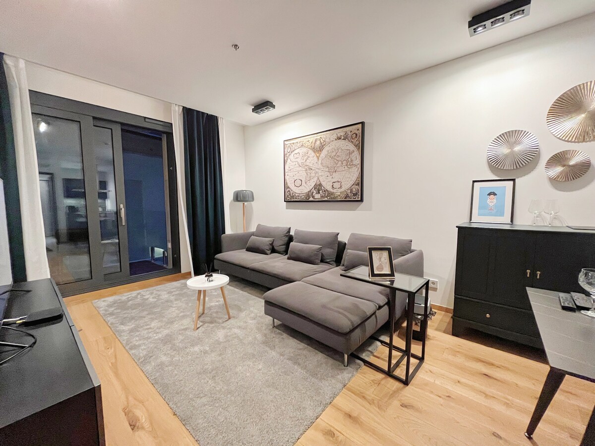 ¡Toma tu café por la mañana con vistas a la animada vida del famoso Paseo de Corvin, en uno de los edificios más nuevos y bonitos del centro de Budapest! Este es un apartamento de 50 m2 con un dormitorio y una sala de estar con balcón con vistas a los restaurantes del paseo marítimo. El edificio cuenta con un jardín interior único y tiene el mejor gimnasio y spa del centro de la ciudad (el centro de bienestar cuesta una pequeña tarifa). Hay plazas de aparcamiento disponibles en el garaje del edificio por una pequeña tarifa (póngase en contacto con nosotros para consultar la disponibilidad).