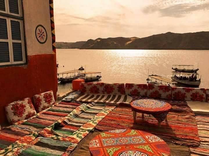 Paraíso de 02 habitaciones con terraza con vista completa al lago, a pocos minutos a pie de los templos de Abu Simble y del centro de la ciudad, 02 baños, totalmente climatizado, TV, WIFI, circuito cerrado de televisión, cocina equipada, limpio, acogedor, perfecto para que se hospede toda una familia