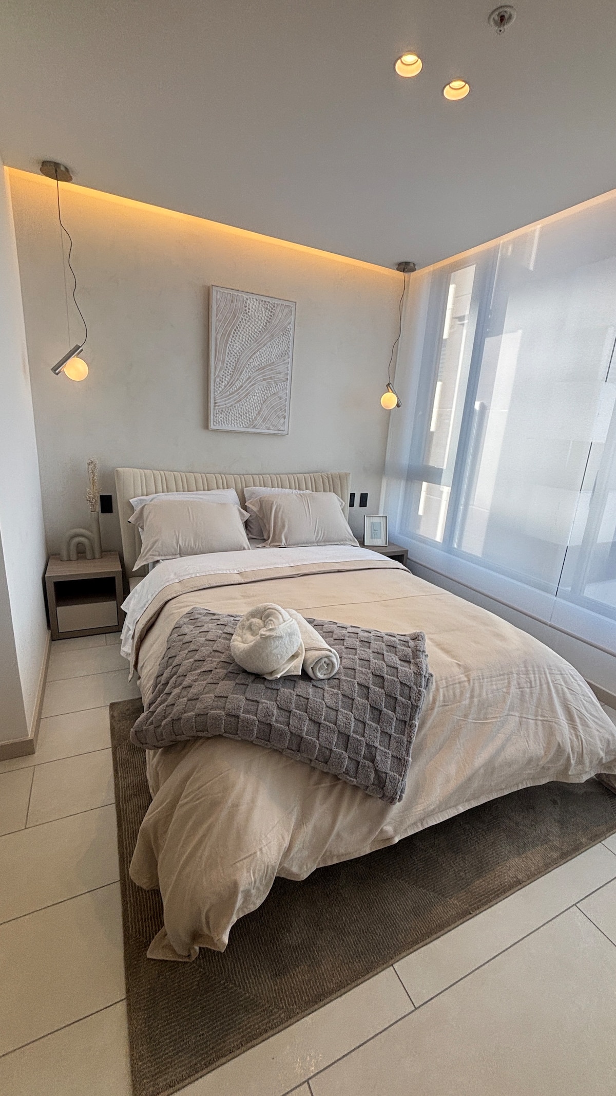 El departamento tiene: cerradura inteligente y acceso con código, cocina, nevera, lavadora y secadora, horno,cocina, bebedero de agua La sala tiene TV de 60" 4K con dirextv Tv, apple TV, netflix, Wifi de alta velocidad 300 mb, un sofá cama, las cortinas son eléctricas, la habitación tiene sábanas, cobijas, cobertores, mantas y toallas nuevas , calentadores electricos, TV de 55" en el dormitorio y con un patio con sillas y parasol privado. Se implemento un vidrio acústico para confort auditivo