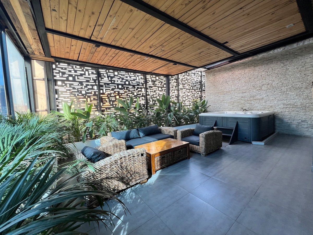Habitación de lujo en 574 Hotel con jacuzzi privado en su interior. Desayuno incluido en tu reserva. TV con Netflix e internet de fibra óptica de alta velocidad. Ubicación premium en el corazón del Poblado. Nuestro hotel boutique cuenta con 15 habitaciones y una zona común tranquila para trabajar, leer o tomar un poco de sol.