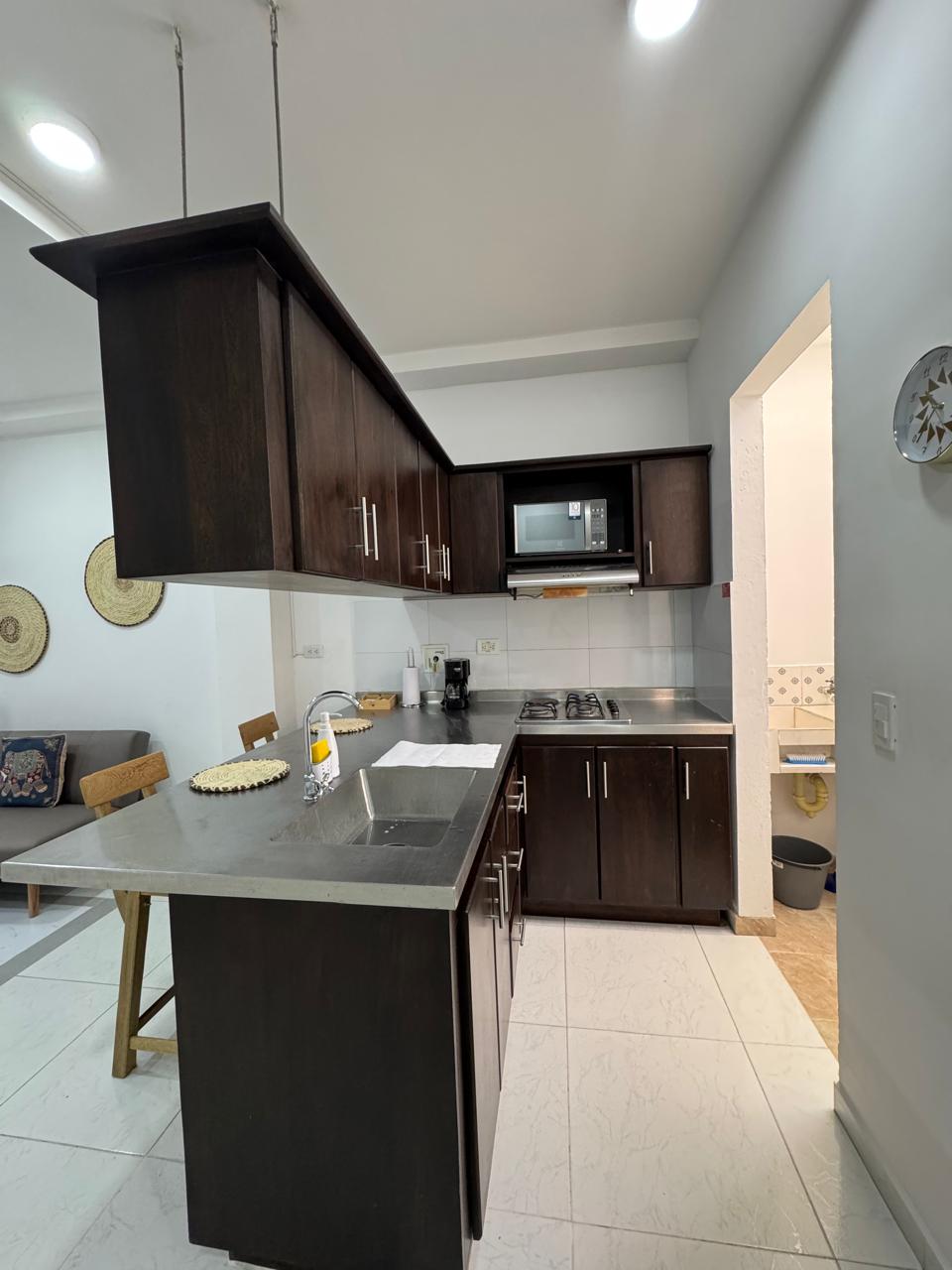 Espectacular apartamento con acabados de calidad y mobiliario moderno, amplia zona social, cocina totalmente equipada y dos confortables habitaciones con baño, WiFi de alta velocidad y smart tv de 55" y aire acondicionado en todas las áreas te brindarán tranquilidad y confort durante tu estancia en Quibdó. Ubicado en el corazón de la ciudad, zona segura y a cinco minutos de supermercados, restaurantes y gimnasios, nuestro alojamiento te ofrece un equilibrio perfecto entre comodidad y estilo.
