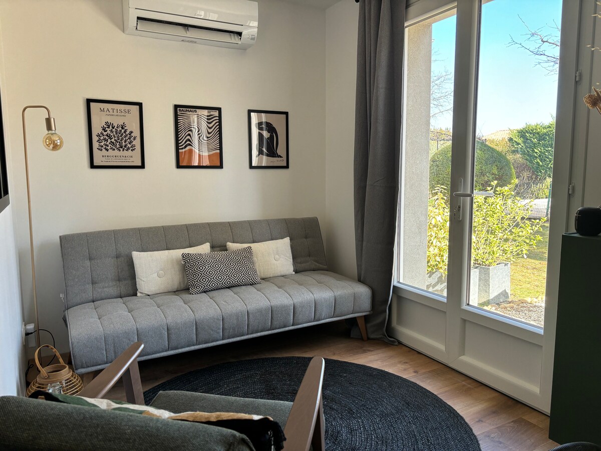 Bonito apartamento de 48 m2 para 2 personas con 1 dormitorio independiente, situado en la primera planta de un pequeño edificio tranquilo y seguro con plaza de aparcamiento y piscina comunitaria. Hay muchos utensilios para cocinar y vajilla. Se proporcionan sábanas y toallas. Se encuentra a 15 minutos andando del centro de la ciudad y a 5 minutos del inicio del precioso carril bici. Los parques de atracciones de SPIROU y Splash World están a 10 minutos en coche y Aviñón a 23 km.