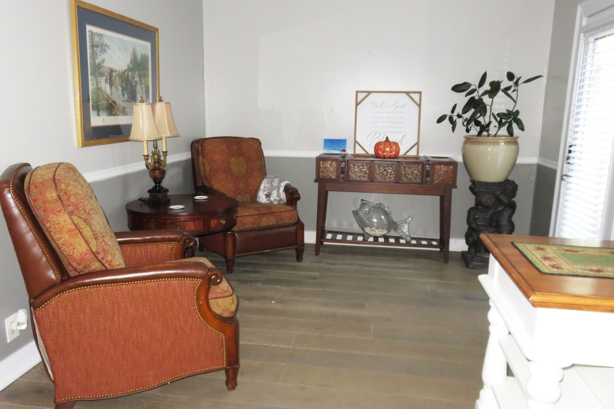 Disfruta de tu propia suite privada en el sótano con todo lo que necesitas para una estancia cómoda, ¡a un precio que no te dejará en la quiebra! Este espacio incluye una entrada privada, una pequeña área al aire libre vallada, un dormitorio con una cama de tamaño completo, un escritorio, una sala de estar, un baño y una cocina pequeña equipada con una Keurig, un microondas, un horno tostador, un refrigerador, un dispensador de agua fría/caliente y platos desechables + cubiertos. (No hay fregadero de cocina disponible) Roku TV incluido. Estacionamiento gratuito en la calle. ¡A solo 10 minutos del centro de Lawrenceville!