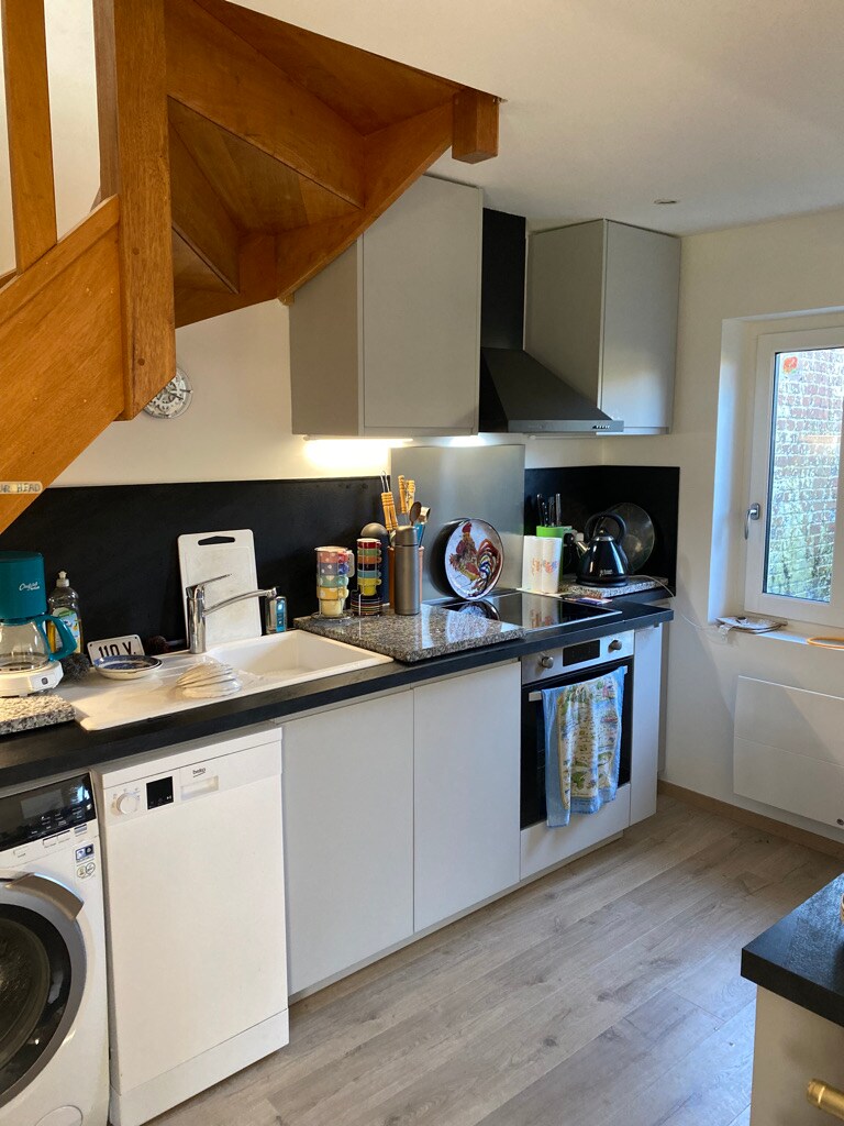 Pequeña casa con piso completamente renovada a 100 metros de la playa de Merlimont y cerca de los comercios Ideal para 4 personas ( 6 camas ) Se compone de: Una cocina equipada, una sala de estar con sofá esquinero convertible ( 140X190 ), un baño con inodoro y ducha a ras de suelo, 1 dormitorio con cama de 140 X 190 con TV y escritorio y 1 dormitorio con 2 camas de 80 X 190 con vestidor Un patio cerrado compartido con 4 viviendas más Estacionamiento gratis en frente de la casa No se admiten mascotas No fumadores
