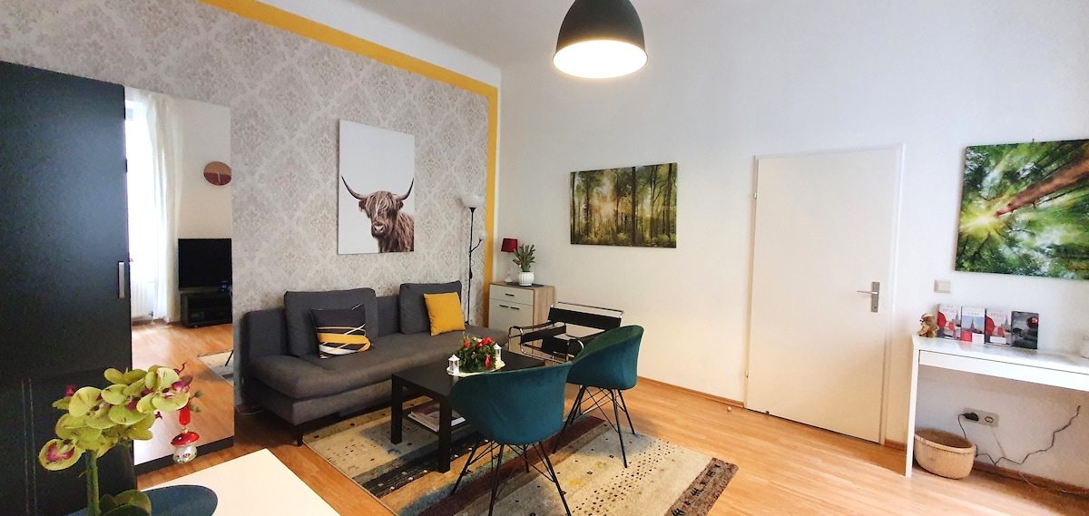 ¡Bienvenido a ♡ Viena! La tranquila Butterfly-Suite, situada en el distrito 12 distrito de Viena está diseñada para 1 a 4 personas, ¡no solo para músicos! Ofrece un amplio salón con piano, comedor, cocina americana con barra y cafetera Nespresso, biblioteca con zona de trabajo, un dormitorio romántico, wifi y un baño original de los años 70. Con el transporte público (autobús, tranvía y metro) se llega en un santiamén al centro, al Palacio de Schönbrunn o a la estación central. ¡Disfrute!