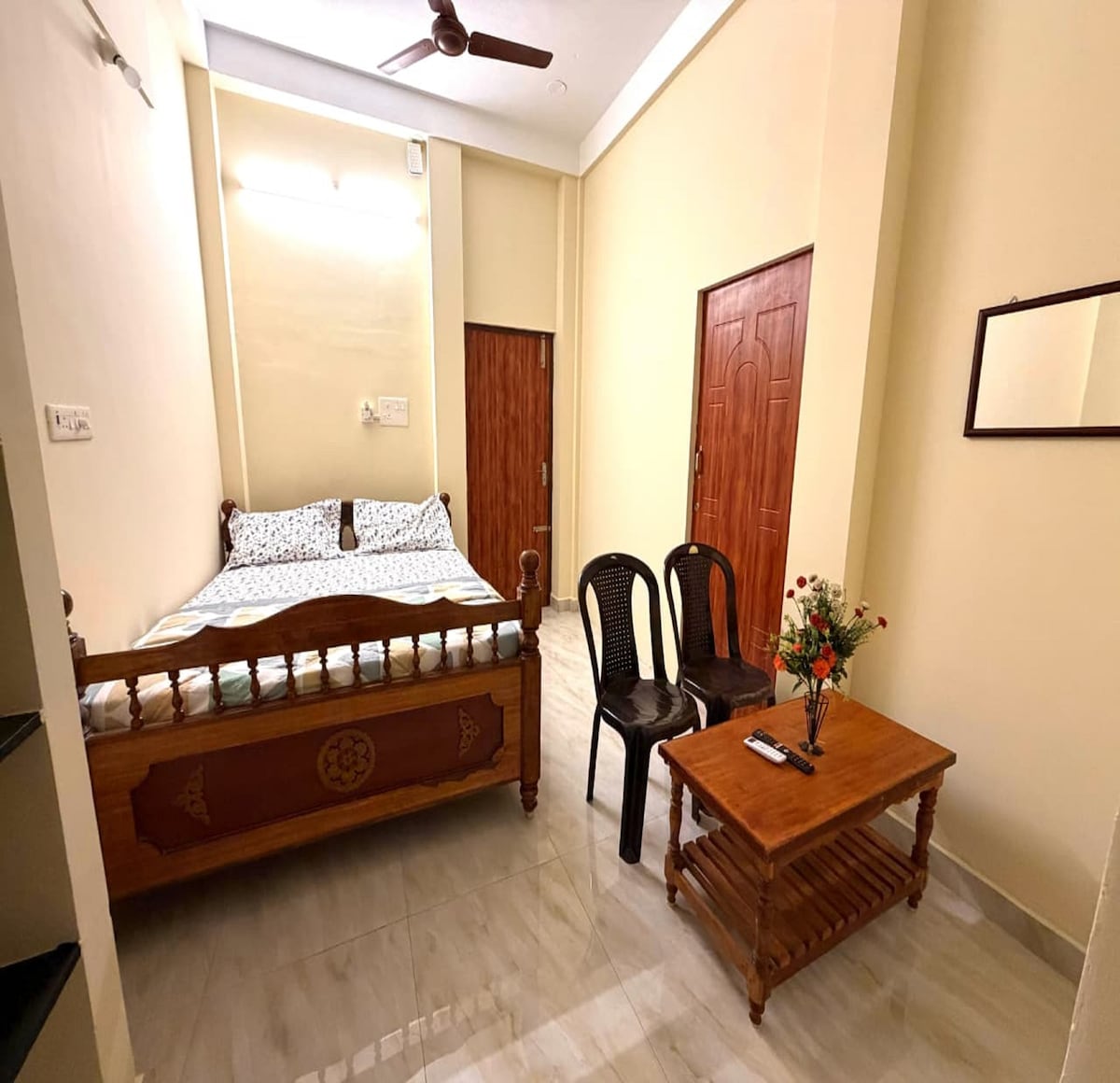 This is a compact, air-conditioned room located on the first floor. Perfect for solo travelers or couples, the room includes high-speed Wi-Fi and a smart TV for your entertainment. The room also features a private balcony overlooking a lively market street, offering a pleasant spot to relax and enjoy the view. Please note: Car parking and lift are not available. Nearby Attractions: Rock Beach – 5 mins drive / 15 mins walk White Town – 10 mins walk Sri Aurobindo Ashram – 10 mins walk