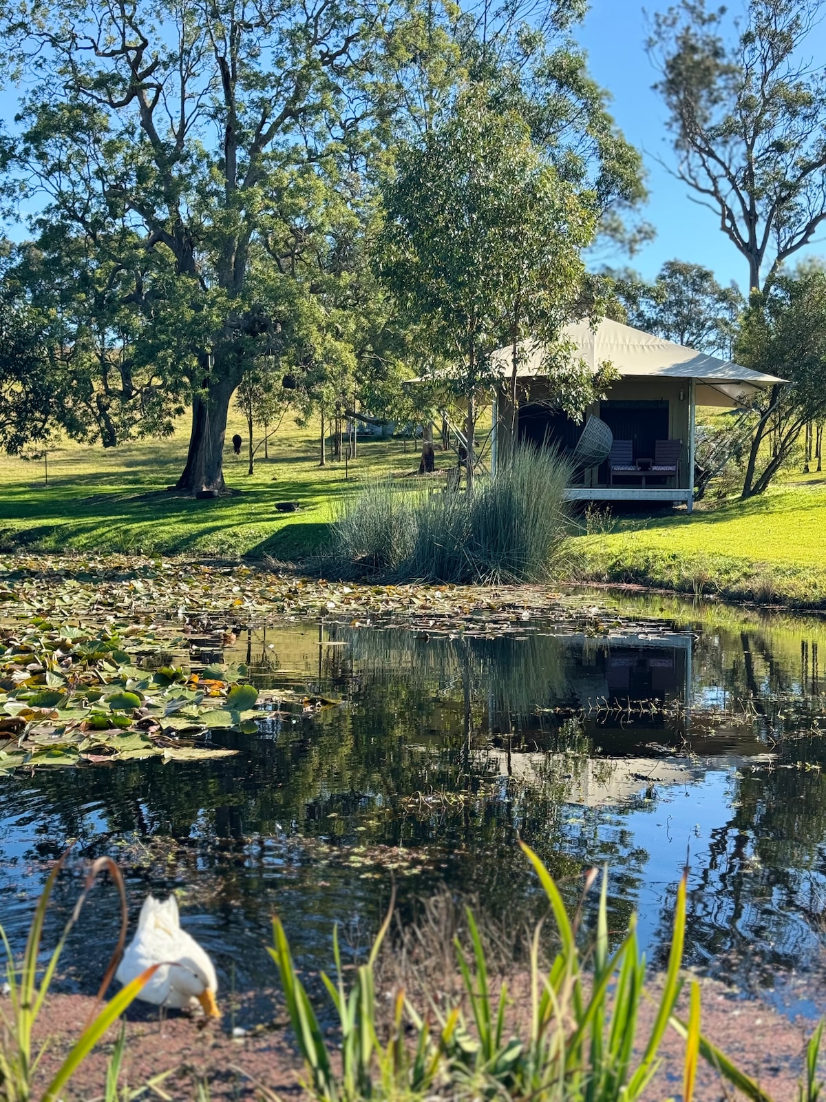 Aléjate de todo cuando te quedes bajo las estrellas en nuestra tienda de campaña rústica glamping en la naturaleza. Ideal solo para parejas, NO apto para niños pequeños o mascotas. ¡Aléjate de todo y desconéctalo! ¡Conéctate con la naturaleza, explora el encantador Bilpin o relájate en la hamaca y disfruta de tu libro favorito! A 1,5 horas en coche de Sídney y justo al lado del Parque Nacional Wollemi. Estarás rodeado de hermosos árboles de bosque antiguos y parques como jardines. ¡Sumérgete en la serenidad mientras te relajas totalmente!