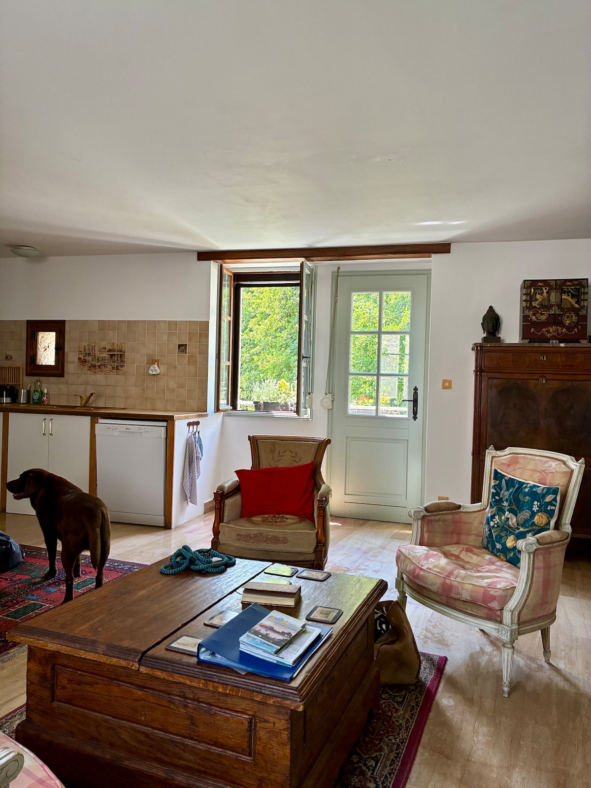La Cache es una encantadora casa de campo situada bajo los acantilados y torres de la exquisita ciudad medieval de Semur-en-Auxois. Situada junto al río Armancon, puedes sentarte, sin ser visto por los transeúntes, en el balcón con una copa de vino, observando a los patos y escuchando los suaves sonidos del agua, con nenúfares flotando debajo de ti.