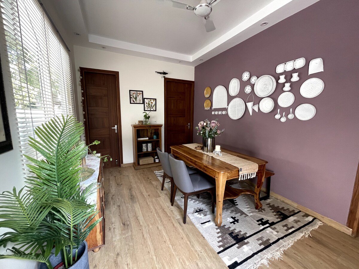Nestled amidst the bustling Golf Course Road, yet offering a serene view of the Aravali forest range, this loft is a true urban oasis. Step into our spacious home with a living area, cozy dining area, and attached kitchen. Bedrooms offer rustic charm, comfy beds, ample storage, and access to peaceful terraces. A single bathroom is fully equipped. Enjoy views from two large terraces—one of the city and the other of the serene Aravali Forest, with a patio.