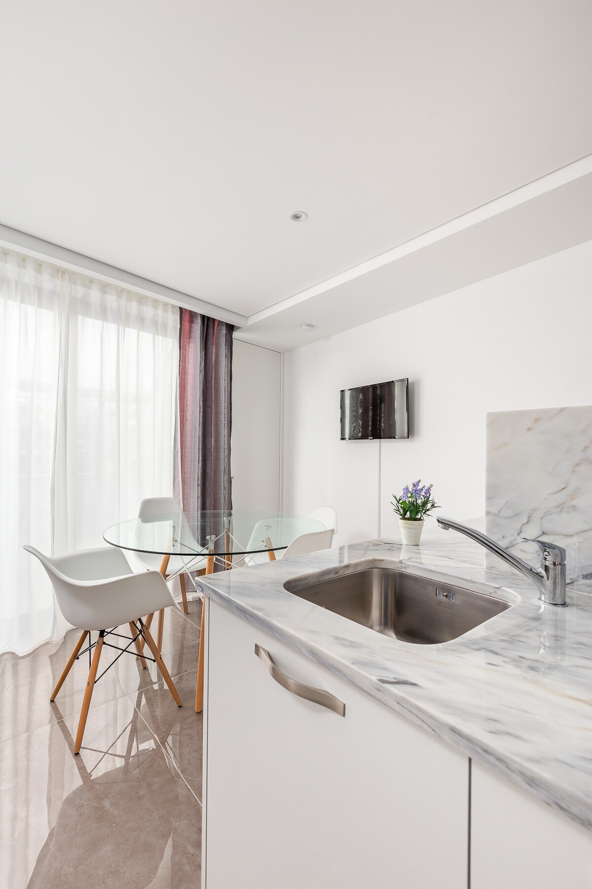 Bem vindo a este elegante Estúdio mesmo no centro da cidade de Espinho. Desfrute da praia a uma curta distancia a pé. a estação de comboios a 5 minutos que lhe permite ir ao centro de Porto em 30 minutos. Todo o comércio com acesso fácil dentro da rua pedonal sem o ruido dos carros. Desfrute ainda do nosso jardim, espaço exterior para fazer churrasco ou apanhar sol. Temos ainda disponível uma cozinha comum.