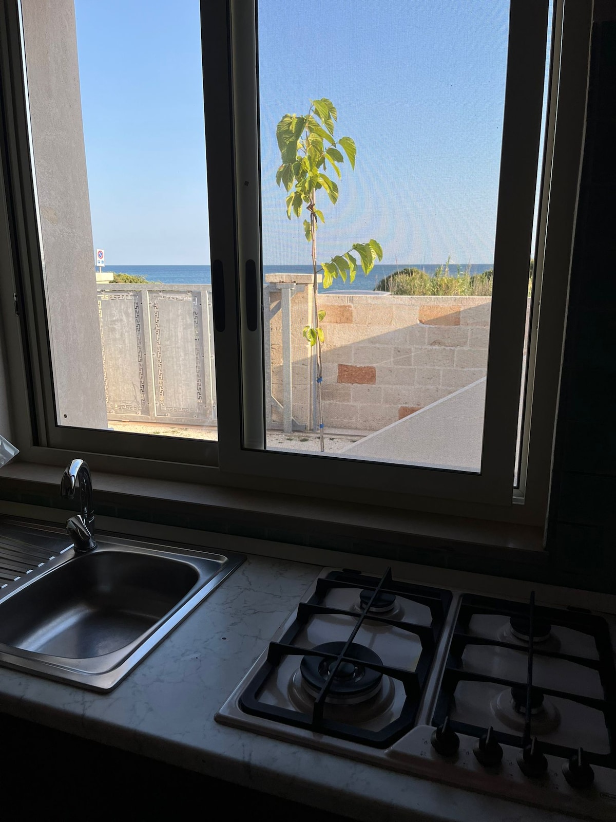 Villa sul mare con giardino per vacanze a Torre Colimena, a pochi metri dalle spiagge della riserva naturale Salina dei Monaci e a 3 km dalle caraibiche spiagge di Punta Prosciutto. Completamente indipendente, dispone di un'ampia veranda con affaccio sul mare,dalla quale godere di bellissime albe e splendidi tramonti, un ampio salone con vista mare e una grande cucina, 2 camere da letto entrambe con vista mare e un bagno con doccia. Può ospitare fino a 6 persone.