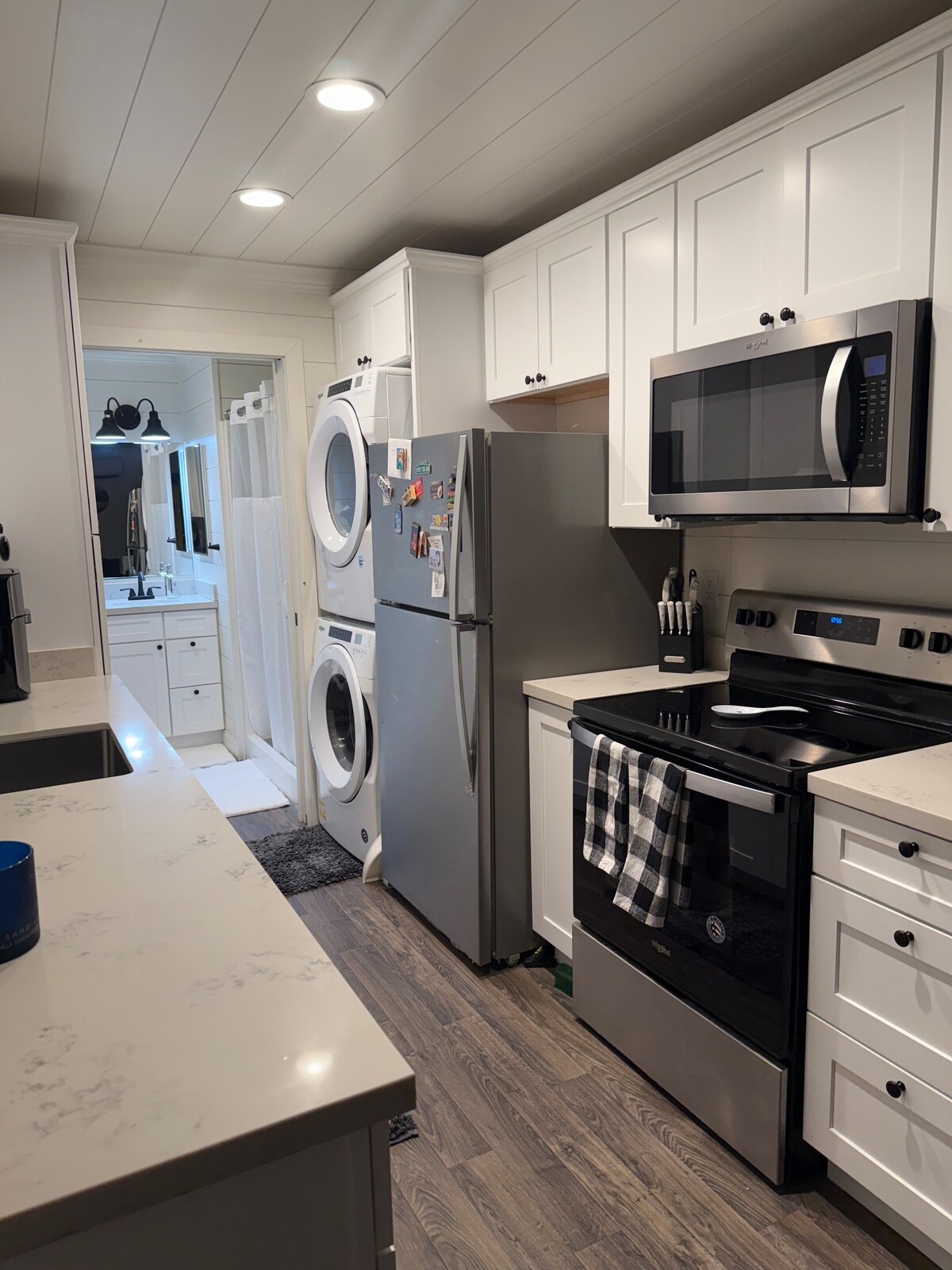 Esta pequeña casa de 400 pies cuadrados fue creada para mayor comodidad y conveniencia. Es un diseño de estudio con un espacio compartido para vivir y dormir, pero aún así ofrece una cocina completa, baño (con bañera), lavadora, secadora y estacionamiento dedicado fuera de la calle. Un espacio lleno de luz con techos abovedados, ideal tanto para estancias cortas como largas. Ofrece una decoración moderna y de diseño que incluye azulejos blancos tipo metro y estanterías abiertas en la cocina completa, sábanas de hilo alto y edredón blanco sobre un cómodo colchón y algunos coloridos azulejos españoles en el baño. Se siente como un refugio tranquilo y privado, pero aún así, está lo suficientemente cerca del casco antiguo de Clovis para ir andando a todas partes. ¡Ven y disfruta! Tienes acceso completo a esta casa. El registro de entrada y salida es independiente en esta casa. Pero, si necesitas algo, mis coanfitriones o yo estamos disponibles para ayudarte. La casa se encuentra en el encantador e histórico distrito del centro conocido como Old Town Clovis. Puedes pasear fácilmente hasta tiendas, restaurantes y festivales cercanos. También hay senderos para correr y caminar cerca. Las grandes tiendas y supermercados están a pocos minutos en coche y se puede llegar al aeropuerto en 15 minutos. Hay fácil acceso a la autopista 168 que te conecta con atracciones como los parques nacionales de Yosemite y Sequoia. Esta casa tiene un lugar de estacionamiento dedicado fuera de la calle en el lado de la propiedad. Hay taxis disponibles y una parada de autobús a 20 minutos a pie. Pero la gente suele conducir cuando visita la zona. Hay wifi y una televisión inteligente. Puedes ver suscripciones personales (Netflix, Roku, Hulu, etc.). Pero no hay televisión por cable. Este es un callejón frente a la casa donde tu «vista» serán garajes y vallas. Si bien hay parques y senderos a poca distancia a pie, no hay patio ni espacio al aire libre en esta casa (a excepción del pequeño patio delantero). Hay una casa principal frente a la calle que está separada por una valla de privacidad. Accedes a tu casa a través del callejón trasero detrás de la casa principal y tienes una plaza de aparcamiento dedicada. Si tienes más de un vehículo, tendrás que aparcar los vehículos adicionales en la calle.