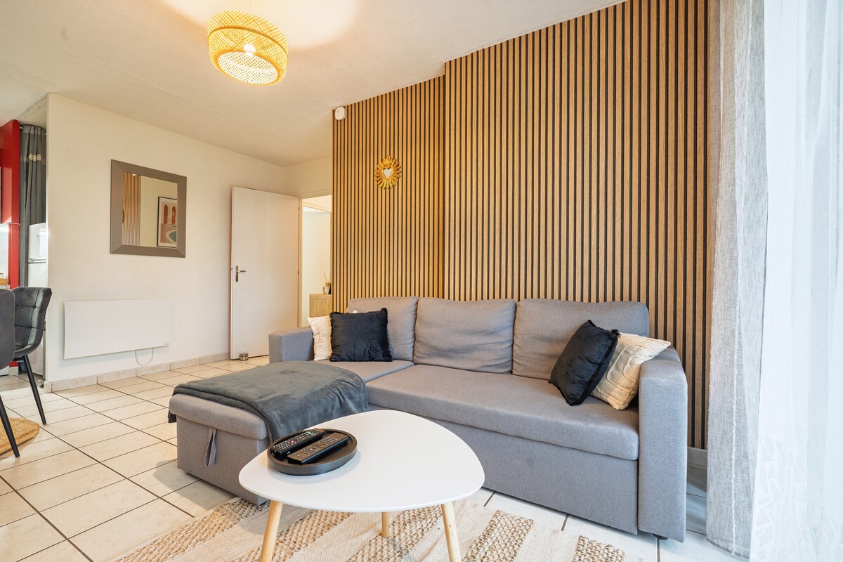 Descubre "L'Oasis": elegante dúplex de 50 metros cuadrados en el centro de Angers. Incluye un garaje privado y seguro en el edificio para una tranquilidad total. Disfruta de la zona de spa (sauna y jacuzzi en la habitación) o de una noche de cine con el proyector (Netflix/Prime/Disney+) desde tu cama tamaño queen. Para estancias más largas, disfruta de una cocina totalmente equipada, un baño moderno y un sofá cama en un espacio habitable bellamente decorado.