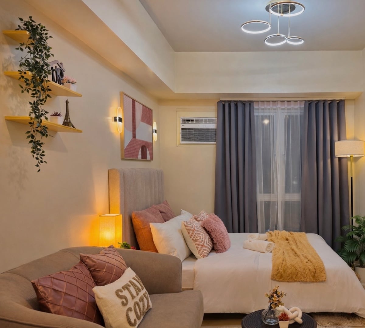 Bienvenido a tu hogar en el corazón de la ciudad de Davao. Este moderno y cuidadosamente diseñado apartamento de 32 metros cuadrados se encuentra justo enfrente del centro comercial Abreeza, ofreciendo comodidad, conveniencia y una relajante vista de la isla Samal, perfecta para estancias cortas y largas. Ideal para viajeros de negocios, familias y huéspedes a largo plazo, la unidad cuenta con un interior tranquilo con tonos cálidos y un ambiente acogedor diseñado para el descanso y la productividad.