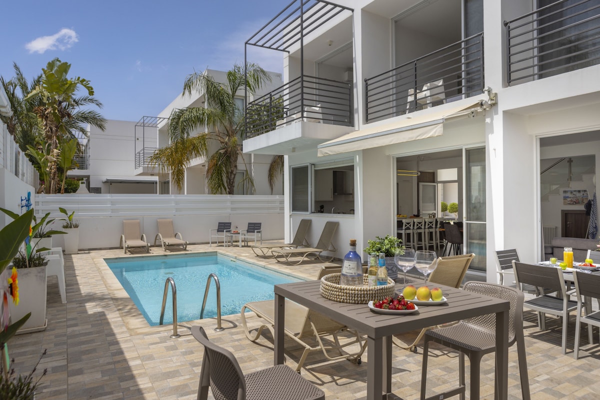 Esta moderna villa de 3 dormitorios con piscina privada se encuentra a 100 metros de la playa de Kapparis. La villa está recién construida en un nuevo complejo de villas privadas de lujo que ofrece tranquilidad y relajación. Está totalmente equipado con muebles y accesorios nuevos para garantizar una estancia muy cómoda. Su opción ideal para que las familias se relajen bajo el hermoso sol de Chipre con total privacidad.