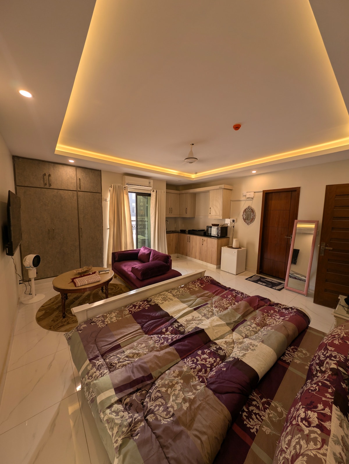 Bienvenido a The Royal Residence, una experiencia de vida elegante y moderna, ubicada en Bahria Town, Rawalpindi, este elegante departamento cuenta con una sutil sala de estar, una pequeña cocina y una cómoda cama tamaño queen para una estancia relajante. Ventajas de la vida ⦿ Calefacción y refrigeración 24/7 (inversor) ⦿Aperitivos gratuitos ⦿Balcón Ventajas de la ubicación ⦿A 1 minuto a pie de KFC, McDonald's, Subway, Pizza Hut y todas las cadenas de comida famosas. ⦿Edificio seguro con seguridad 24/7 *Solo para amigos y familias* * No se permiten parejas no casadas *
