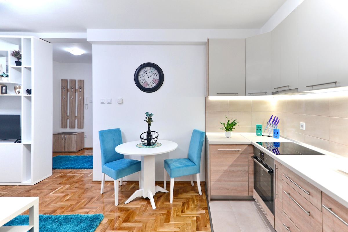 Sé uno de los primeros huéspedes en nuestro apartamento de 35 metros cuadrados (375 pies cuadrados) en una ubicación estupenda. La calle tranquila con fachadas rústicas y tilos te dará la oportunidad de sentir el antiguo espíritu de Novi Sad. Estarás situado en una excelente ubicación, cerca de todos los lugares que desees visitar, sin importar si te hospedas por negocios o por placer. El apartamento está a solo 600 metros (5 minutos) a pie de la plaza central de la ciudad. Idiomas hablados: inglés, serbio.