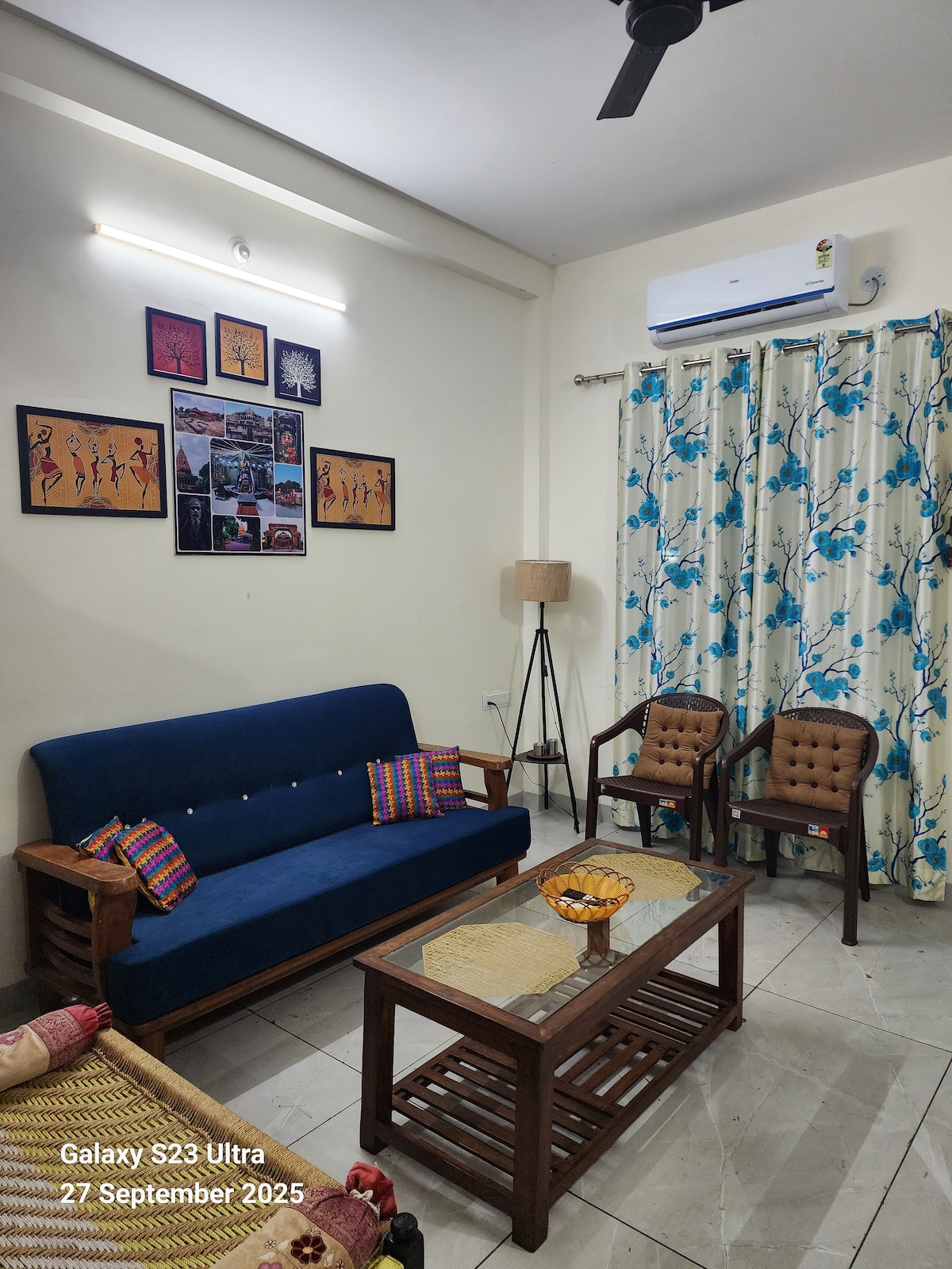 Bienvenido a nuestro espacioso refugio 2BHK en Ujjain, perfecto para familias y grupos que visitan el Templo Mahakal. La casa cuenta con dormitorios con aire acondicionado, un balcón privado, una cocina básica (ideal para té/café), agua RO y estacionamiento gratuito. Tiene capacidad para 6 personas cómodamente, con ropa de cama adicional disponible para un máximo de 8 personas a petición. Disfruta de un check-in flexible, un barrio tranquilo y la orientación del anfitrión para las visitas al templo. Limpio, acogedor y cuidadosamente preparado: tu hogar lejos de casa en Ujjain.