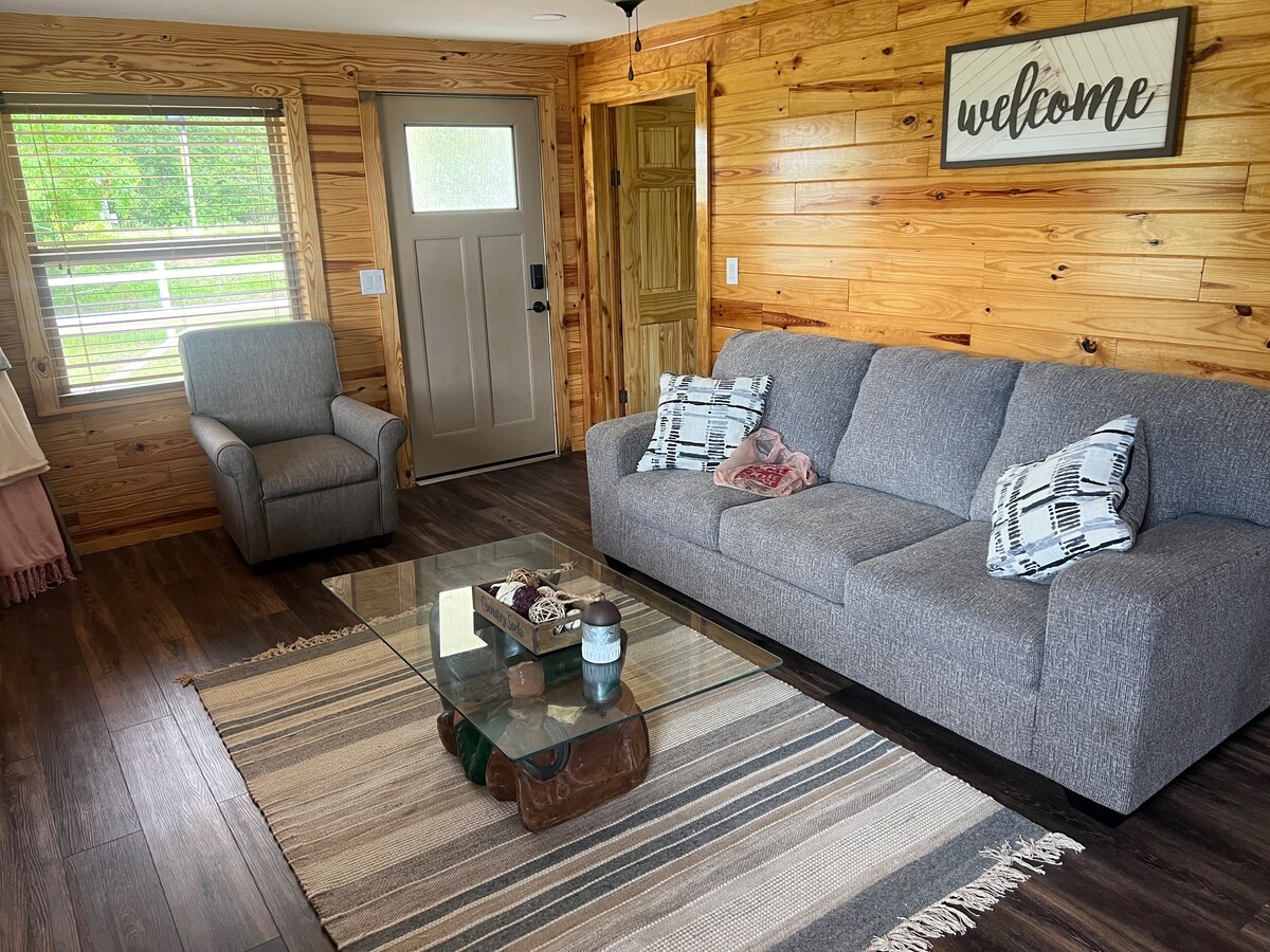 No dejes que esta «pequeña» cabaña te engañe, con un dormitorio y un loft, cocina completa y baño y una gran terraza, esta cabaña es perfecta para parejas y familias pequeñas. ¡Estamos ubicados a 30 minutos de la playa de Pensacola, con una gran variedad de restaurantes y tiendas únicas a nuestro alrededor! Con hermosas comodidades, que incluyen: piscina, parque para perros y chimenea al aire libre. ¡Ni siquiera tienes que aventurarte a crear recuerdos que durarán toda la vida! Esta es una casa pequeña totalmente nueva diseñada específicamente para los huéspedes en Airbnb.