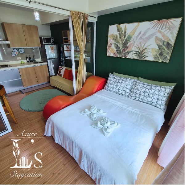 Disfruta y relájate en este espacio tranquilo y elegante. Esta unidad de 1BR es ideal para 2 huéspedes (se permite alojar hasta 4 huéspedes). La unidad se encuentra en el edificio 12/F St. Tropez, con vistas inigualables a la piscina de olas, la playa y los servicios de Azure. Esta unidad viene con estacionamiento gratuito garantizado (1 espacio). Llegada autónoma habilitada. Check-in: 2:00 P. M., check-out: 12:00 P. M. Nota: La tarifa de la piscina de 250/sesión se pagará por separado; también las piscinas están cerradas los martes por mantenimiento, excepto los días festivos.