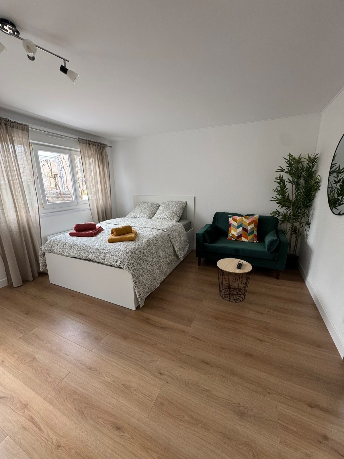 Apartamento luminoso de 90 m² en pleno centro de Épinal, tranquilo en un patio interior. Perfecto en pareja, familia o amigos. Dos dormitorios, amplio salón, cocina equipada, baño con ducha a ras de suelo, terraza privada. Hasta 6 personas. Wi-Fi rápido, TV conectada, Netflix, calefacción inteligente. Llegada autónoma Restaurantes, comercios y estación de tren a pie. El apartamento tiene un alma: es mi casa. Quedo disponible durante toda la estancia para ayudarlo a organizarlo de la mejor manera posible.