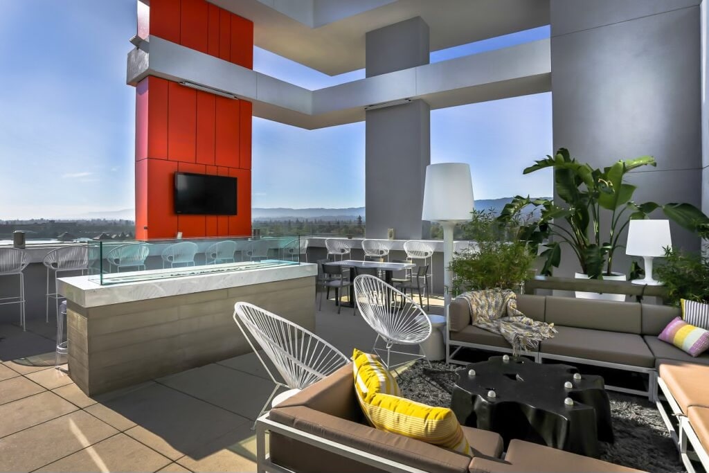 This modern studio in the luxurious Vasara complex is perfect for business travelers, just minutes from Meta HQ & major tech hubs. Stay productive with a dedicated workspace, ergonomic chair, monitor, & high-speed Wi-Fi. Unwind at the cozy kotatsu table after a long day. Enjoy a fully equipped kitchen & exclusive resort-style amenities: pool, spa, gym, bocce ball & clubhouse. A secure parking spot with free EV charging adds extra convenience to your stay. Perfect for work, play, and relaxation.
