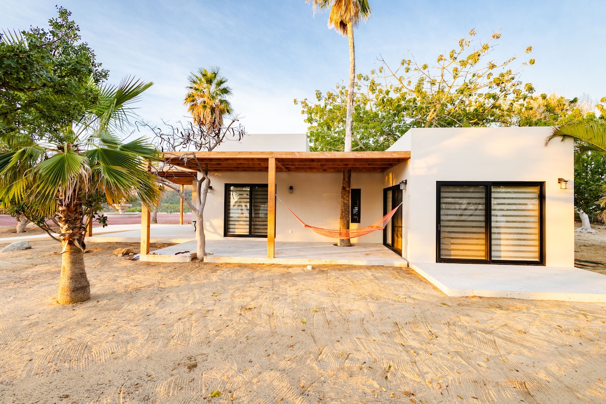 Nueva casita privada, acogedora y segura con una pequeña cocina al aire libre (ideal para cocinar LIGERAMENTE) e internet de alta velocidad ubicada en el barrio de San Vicente, a 10-15 minutos a pie del centro de Todos Santos y a 15 minutos a pie de la playa de La Poza. La casita comparte la propiedad con nuestra casa principal de construcción ecológica. Desde la casita puedes ir en bicicleta a hermosas rutas de ciclismo de montaña o conducir 10 minutos hasta el rompeolas de surf/natación en Cerritos. ¡Estaremos encantados de llevarte de paseo o mostrarte los senderos!