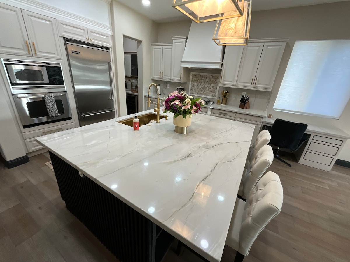 *Nuevo anuncio* Casa moderna y limpia con electrodomésticos nuevos y muebles nuevos. Tranquila y espaciosa, con 3 dormitorios y 2 baños, un gran patio trasero privado con piscina y patio, garaje para 2 coches, aire acondicionado, lavadero y espacio de trabajo. Wifi de alta velocidad, 2 televisores inteligentes 4K, café y té de cortesía. Negocios o placer... esta casa cuenta con todos los servicios. Te garantizamos una casa limpia y desinfectada con sábanas y toallas frescas. Los huéspedes tienen acceso a aparcamiento en el garaje, entrada y calle. Cerca de la autopista, tiendas, campo de golf y restaurantes.