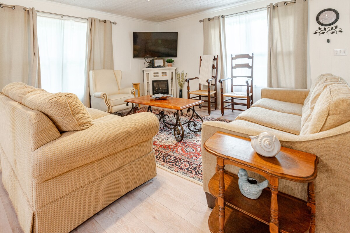 Relájate en un luminoso alojamiento de 4 dormitorios y 2 baños en Daphne con techos abovedados y estilo costero, con capacidad para 10 personas. Lugar privilegiado: a 5 minutos de la I-10, a 5 minutos de Mobile Bay ~ a poca distancia en auto de las playas, Mobile y Fairhope. Disfruta de la sala de estar abierta, la cocina surtida y el porche con mosquitero. Habitación principal tamaño king + 3 habitaciones tamaño queen (2 queen en una) 5 camas ✔️Porche con mosquitero ✔️4 televisores inteligentes ✔️ Wifi ✔️Lavadora/secadora y amplio estacionamiento ✔️Barrio tranquilo Auto check-in, apto para familias, libre de humo. ¡Reserva ahora!