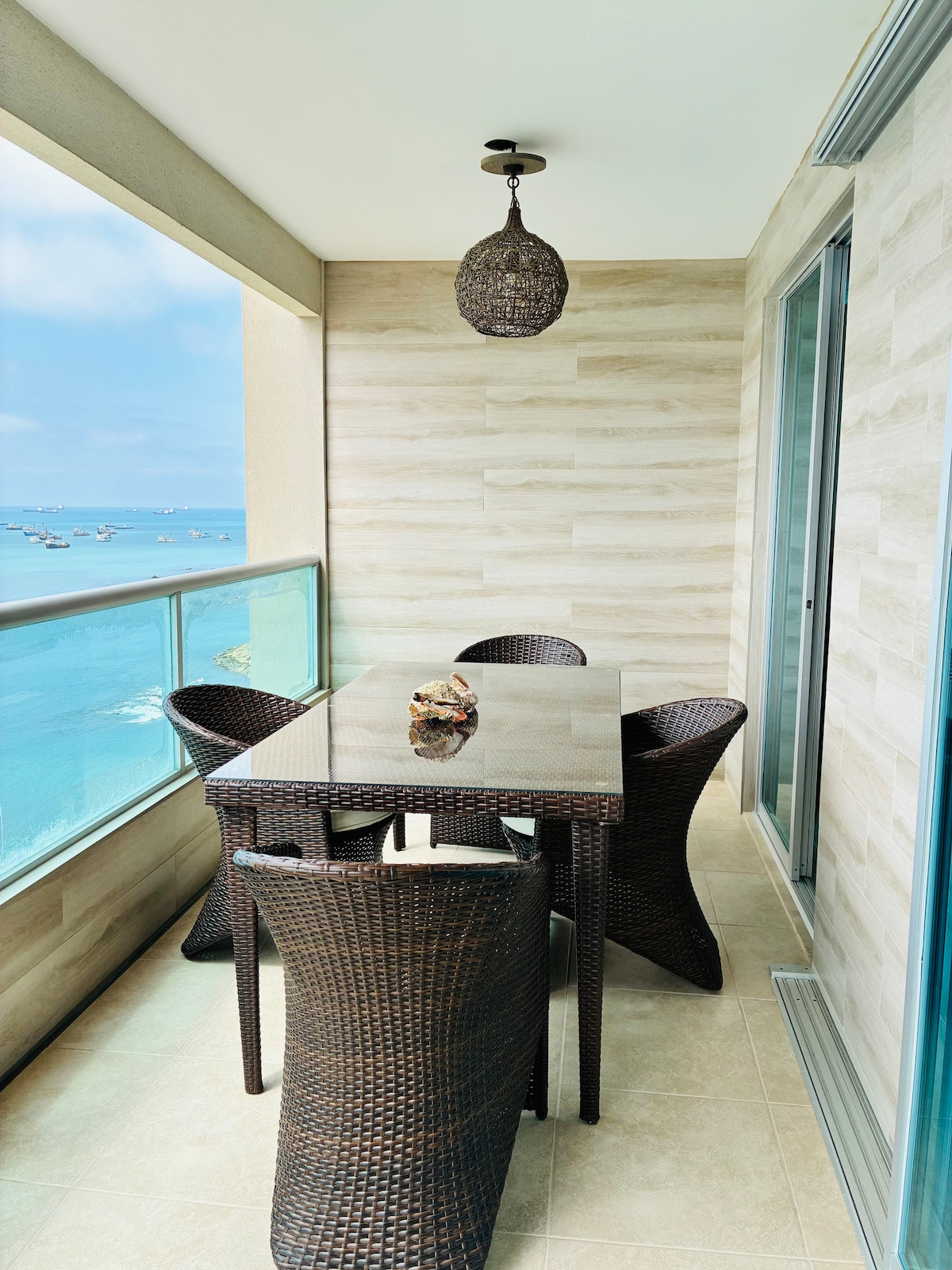 Apartamento ubicado en el Hotel Colon de Salinas. - Cuarto con Smart TV de 75 pulgadas y Netflix - 2 baños con ducha - Balcón con vista directa al mar - Sala - Cocina - Café y cafetera - Parqueo privado - Seguridad 24 horas - 3 piscinas - Justo al comienzo de El Malecón - Servicio de hotel (Restaurante, spa, gimnasio, room service). Estos servicios son independientes del apartamento. *Solo se permiten 2 huéspedes por noche* *Por favor tener cuidado con la hamaca*