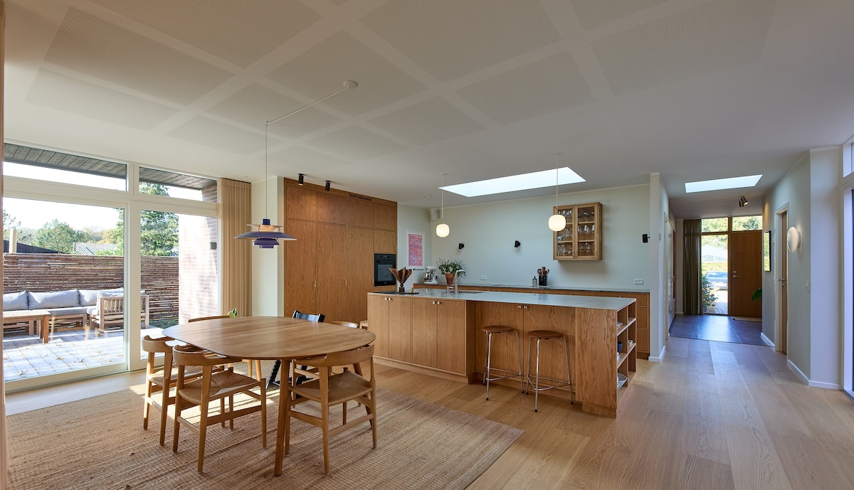 Amplia casa familiar llena de luz en la tranquila Bagsværd rodeada de bosques, lagos y tranquilidad - 15 minutos en coche / 40 minutos en transporte público al centro de Copenhague. Tiene capacidad para 7 personas en 4 dormitorios (incluida una habitación apta para niños), con 2 baños, cocina moderna, proyector, chimenea, terraza, jardín, horno para pizza y camas vegetarianas. A partir de noviembre: sauna y bañera fría. Ideal para familias, parejas o trabajadores remotos. Tranquilo, acogedor y cerca de la naturaleza: ¡tu base perfecta en Copenhague!