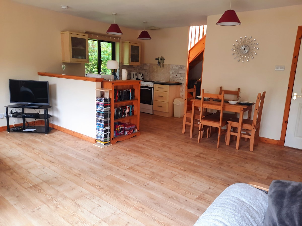 Planta baja, North Flat, Red Lodge Amplio apartamento en la planta baja en el corazón de Tarbert. Alojamiento Planta baja en la calle, cocina de planta abierta, comedor, sala de estar, TV inteligente de 32pulgadas, WIFI. Cocina eléctrica y horno, microondas, refrigerador-congelador. Dormitorio con cama doble, espacioso con armario empotrado. Habitación húmeda moderna y espaciosa con calefacción por suelo radiante. El armario del pasillo puede almacenar 2 bicicletas, SOLICITA LA LLAVE DEL ARMARIO ANTES DE TU ESTANCIA SI TIENES BICICLETAS para ALMACENAR. 🚴🏻♀️ Estacionamiento en la calle.