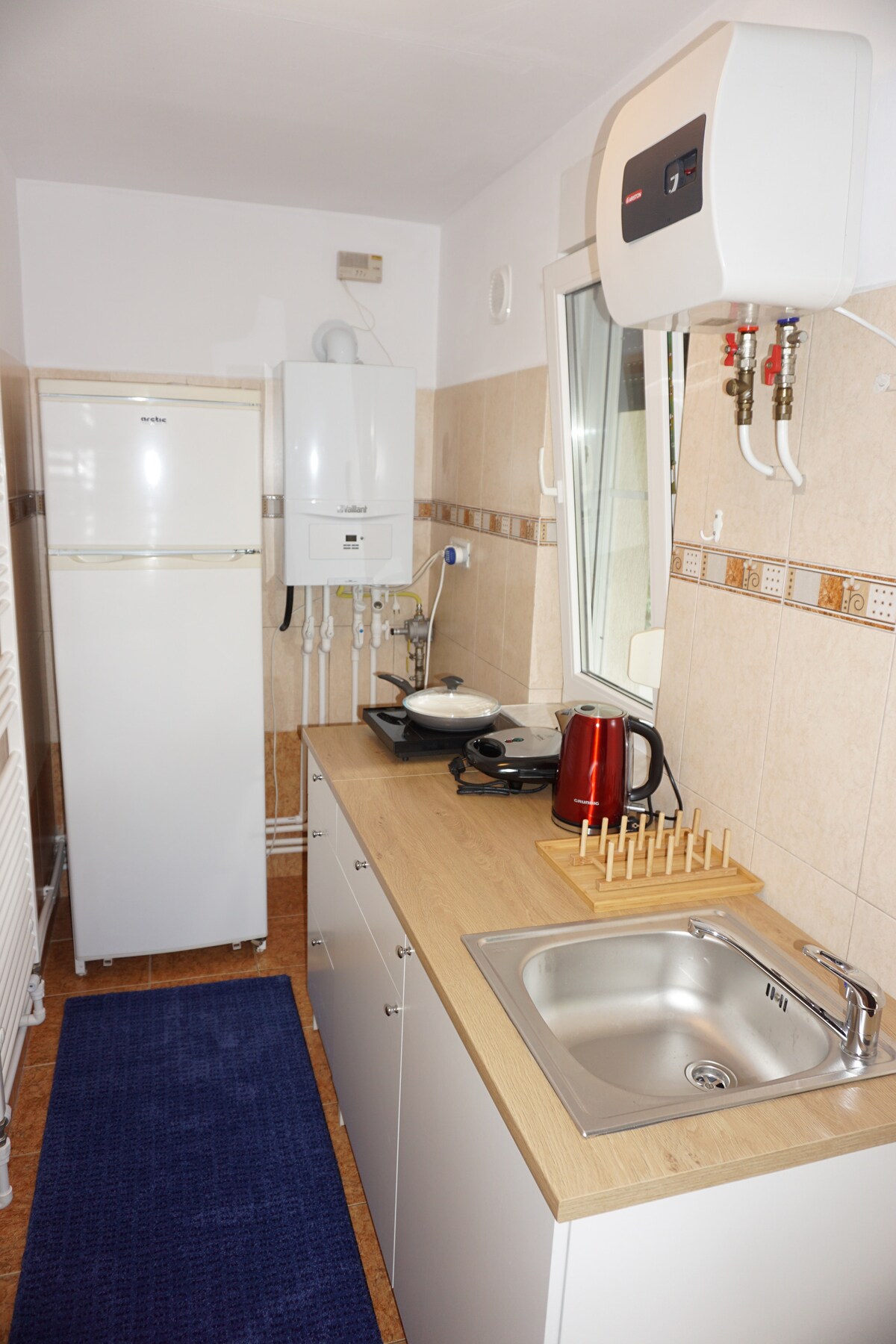 La Boheme Therme apartments, 5km away from Therme Complex, the biggest in Europe, have all the necessary facilities to make your family stay exceptional. With a modern air, the apartments have a bedroom with king size bed, bathroom completely equipped with washing machine, walking shower, towels, a living room with sofa bed, 4K Ultra HD Smart TVs with a 163 cm diagonal, open space kitchen completely equipped with microwave oven, an electric oven, stove, dishwasher , dressing room and balcony.