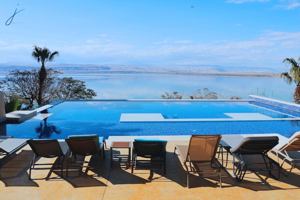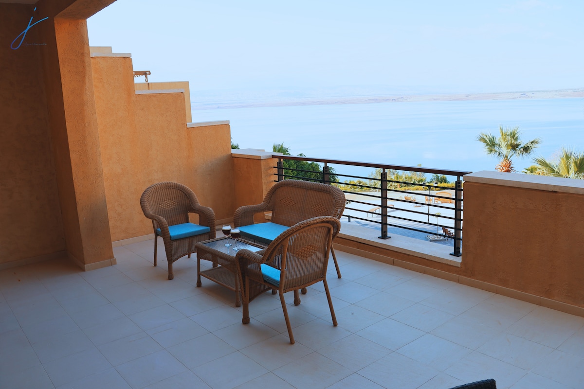 Relájese en esta residencia tranquila y elegante, que goza de una hermosa vista directamente sobre el Mar Muerto, y también goza de seguridad y vigilancia, y cuenta con todos los servicios que el visitante necesita, además de la presencia de un centro comercial al lado para satisfacer todas las necesidades