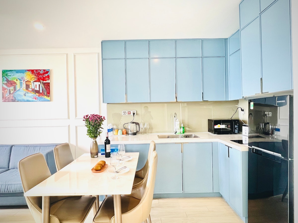 Ubicado en 200 Võ Nguyên Giáp en el emblemático edificio A La Carte, este nuevo estudio ofrece una impresionante vista directa al mar con un balcón privado, perfecto para disfrutar de tu café por la mañana mientras admiras el amplio mar azul, las suaves arenas blancas y los elegantes cocoteros. Ubicado justo en la playa de Mỹ Khê, es un refugio ideal para parejas y amigos que buscan relajación o creativos que trabajan de forma remota. Despierta cada día con un amanecer espectacular y experimenta la verdadera esencia de un paraíso frente a la playa.