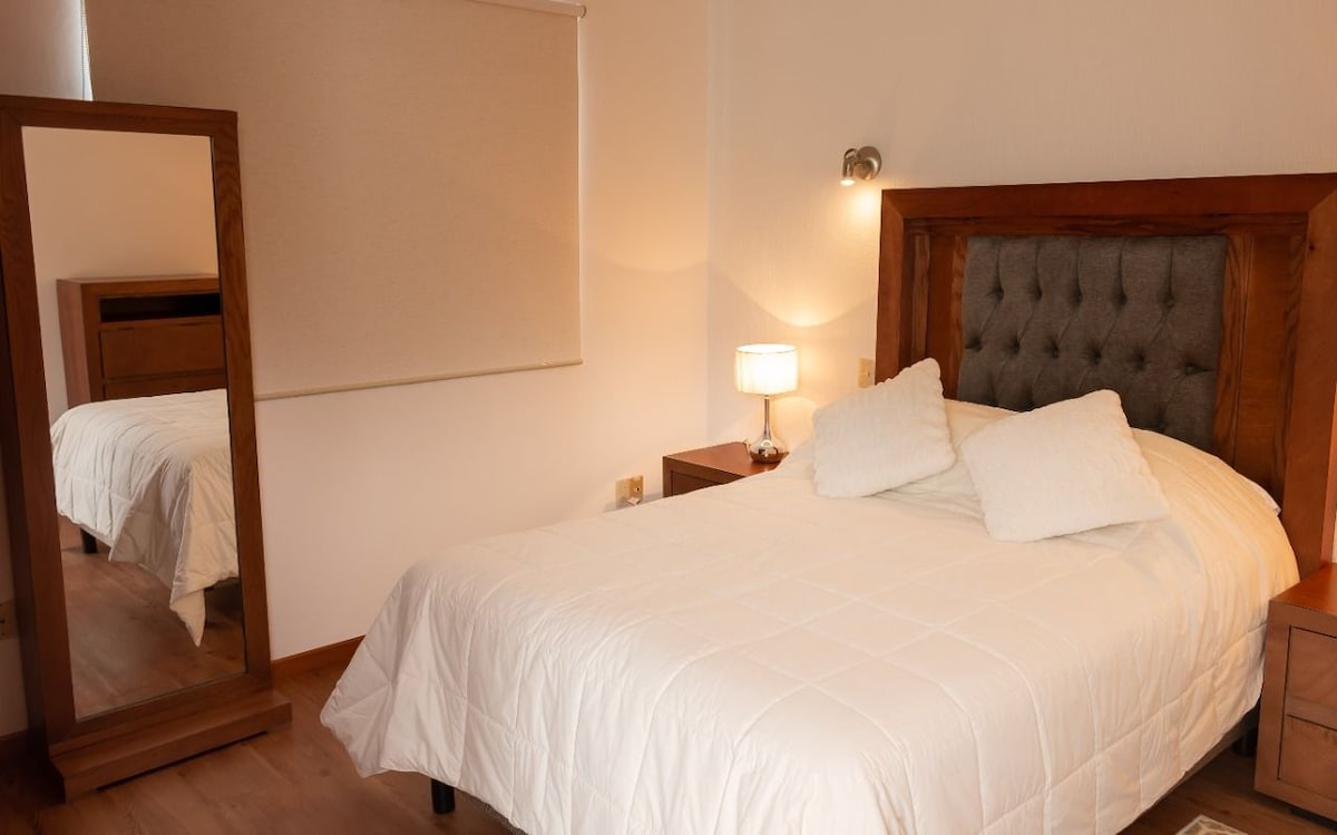 Vuelve a conectarte con tus seres queridos en este alojamiento ideal para familias. Departamento nuevo para hacer lo mismo como en casa, preparar alimentos, descanso, ver TV, internet, estudiar, trabajar, leer, acceso rápido a la gran Ciudad de México, estacionamiento vehículo compacto, silencio, vegetación; cuenta con elevador. Restricciones por ser edificio de departamentos habitacional: Respetar reglas de buen vecino, No mascotas, No ruido excesivo, No fiestas, No fumar al interior.