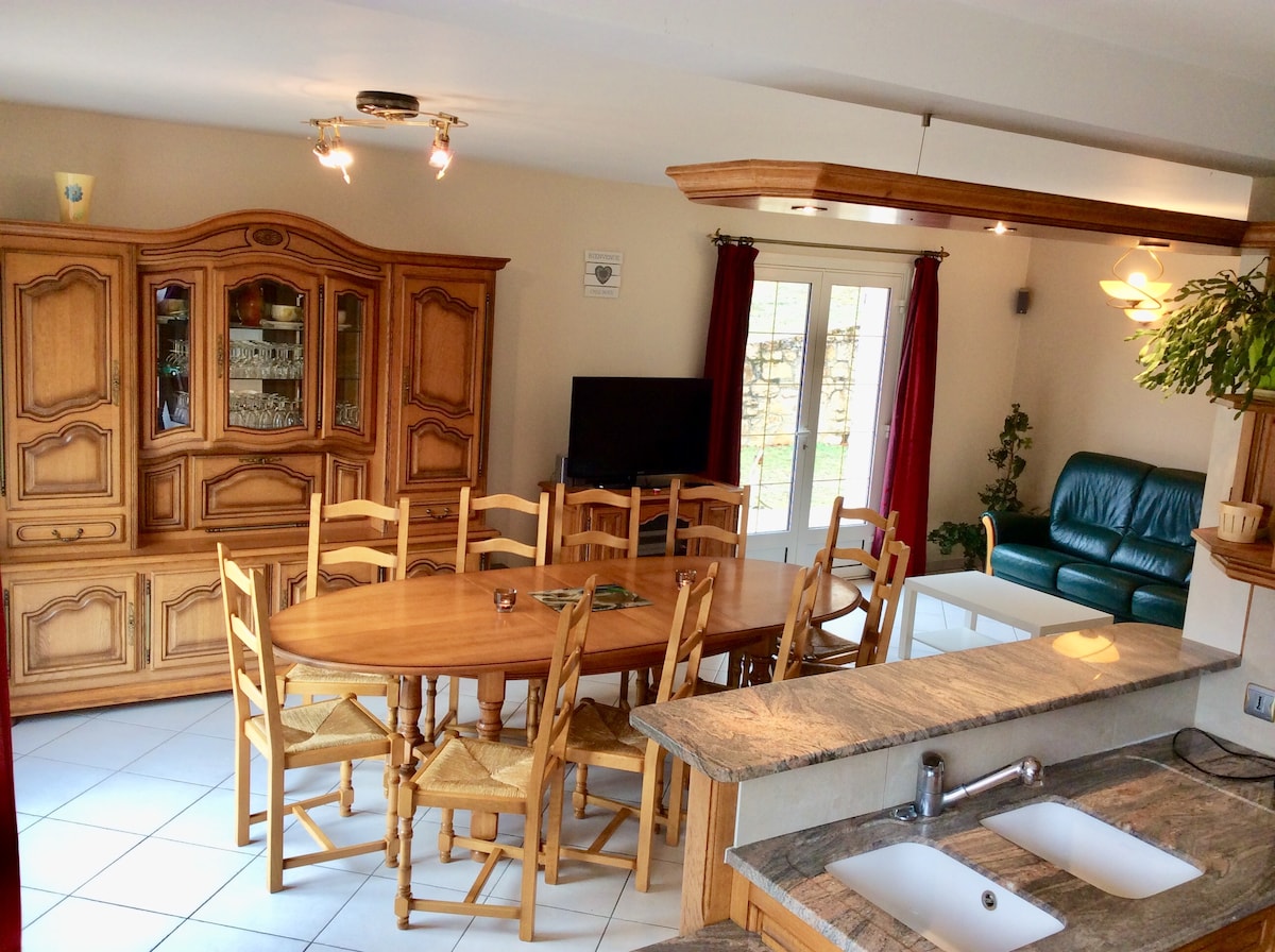 Venga a relajarse en esta casa situada en un entorno muy agradable. El gran spa de natación climatizado a 35/37 grados le hará olvidar su vida diaria. Te maravillarán las instalaciones: - Dormitorio: cama de 2 metros con memoria y muelles, iluminación íntima. - Cuarto de baño: ducha, lavabo doble, tocador, WC (otro WC independiente en la casa). - Cocina equipada - Salón: piano, futbolín, juegos de mesa, televisión. Altavoz conectado a Alexa.