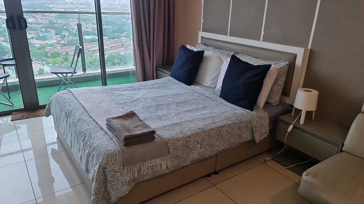 Explora nuestro acogedor estudio, que puede alojar de 2 a 3 personas con una cama tamaño queen y un sofá cama. A solo 15 minutos en coche de KLIA T1/T2, el lugar está rodeado de muchos restaurantes, sucursales de comida rápida, tiendas de comestibles y lavanderías, todo a poca distancia a pie. Disfruta de todas las comodidades, incluido el parque infantil, la zona de barbacoa, el gimnasio y la piscina, con seguridad las 24 horas, 7 días a la semana. * No disponible para dejar el equipaje antes de las horas de llegada. Debido al diseño del edificio, es necesario subir 10 escalones para llegar al ascensor.