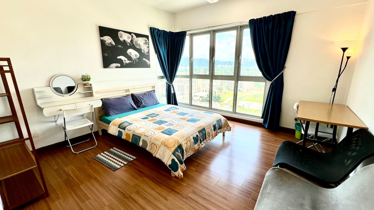 APARCAMIENTO GRATUITO Una casa de huéspedes exclusiva y elegante diseñada y construida personalmente desde cero que realmente excitará los sentidos de aquellos que viajan a Cyberjaya. Situado en una unidad de esquina limitada con un gran balcón y vistas fascinantes. La unidad viene exclusivamente con wifi 5G de 100 Mbps y una cuenta de Netflix dedicada para atender a aquellos que vienen a trabajar y relajarse.