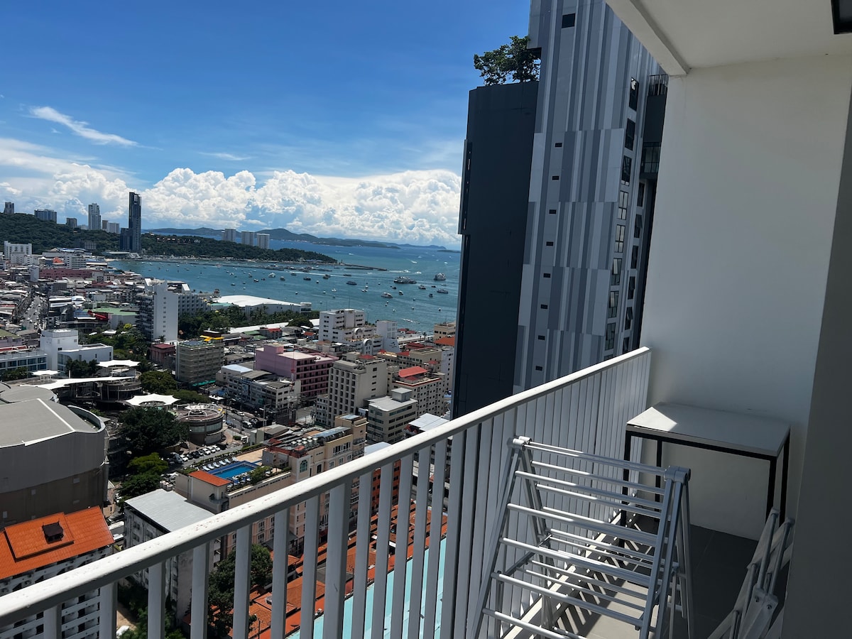 "Beautiful Condo and Location is excellent. The view from the balcony in the morning was breathtaking out into the ocean" - Jason ☆ Airbnb Superhost since 2015 ❤ Stunning Sea & City view ❤ Smart TV ❤ Fast Internet ❤ 1 bedroom / studio convertible ❤ Full equipped ❤ Quiet & Relaxing ❤ Sky pool and Jacuzzi ☆ Mini mart downstairs ☆ Beach access (1 min walk) ☆ Pratumnak Night Market (10 min. walk) ☆ Walking Street & Bali Hai Pier (10 min.)