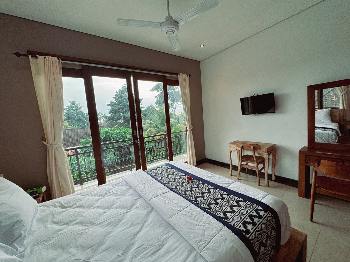 Why You’ll Love It: 1. Quiet alley, just minutes from Ubud Center 2. Private balcony with nature views 3. Free breakfast delivered daily 4. AC and a comfortable bed 5. Fast Wi-Fi + table and chair, for remote work 6. Private bathroom with hot/cold shower 7. Free scooter parking + easy Grab/Gojek access Perfect for couples, solo travelers, or digital nomads.