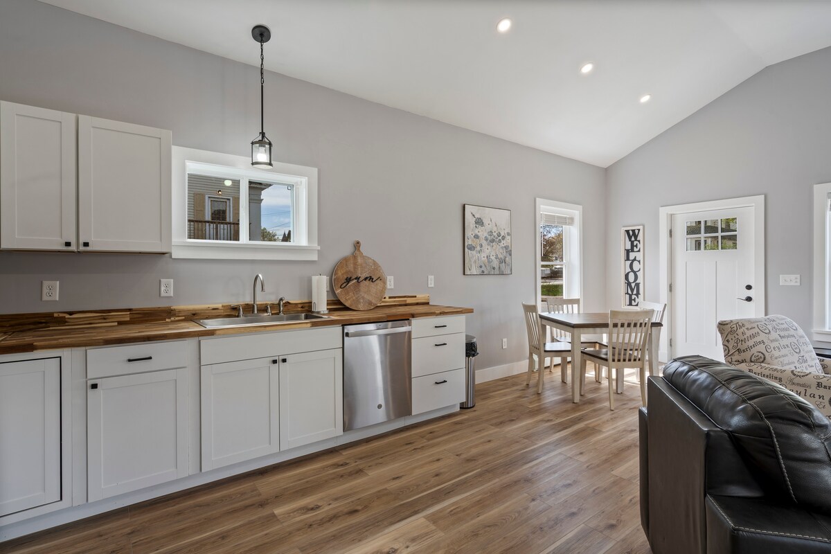 Amplio, cómodo y totalmente equipado apartamento de 2do piso 1 BR 1.5 BA en la ciudad. La ubicación súper conveniente está a poca distancia a pie del parque frente al agua, el supermercado y todo el centro de la ciudad. Incluye una bonita terraza al aire libre con vistas al río y estacionamiento en la calle para 1 automóvil. Edificio ocupado por el propietario/anfitrión. Ubicado a 10 minutos del aeropuerto BGR / Bangor, a 5 minutos de la I-95, a 1 hora de Bar Harbor/Parque Nacional Acadia. El supermercado Shaws y Dunkin' están al lado. Hay 3 hospitales cerca.
