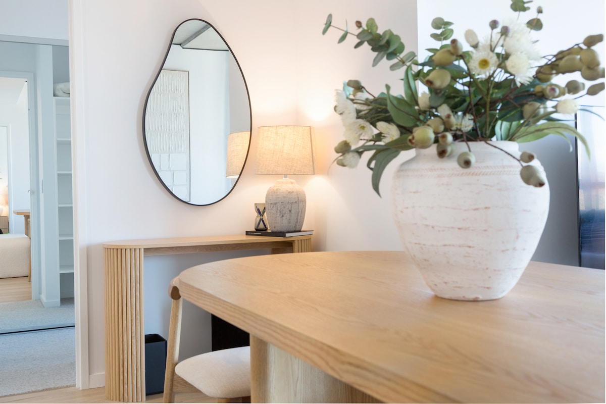 Located on the south side of Canberra, close to Woden and Tuggeranong, our studio on the ground floor of our house offers you a comfortable place to stay in a quiet area. Stylishly decorated, there is an open plan living area that looks out onto the beautiful Brindabella mountains. It is fully equipped to make your stay a pleasant and convenient one.