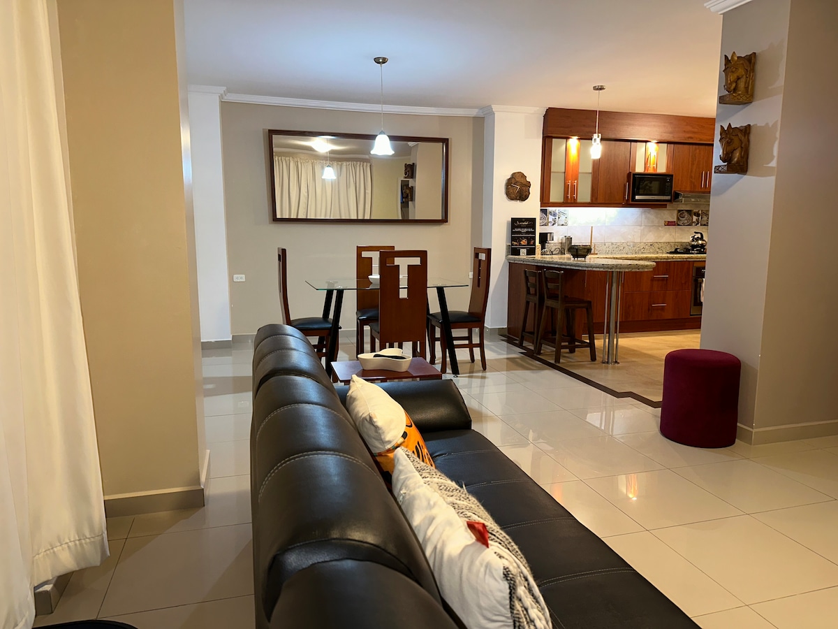 Vive experiencias inolvidables con tu familia o grupo de amigos en este apartamento muy elegante, moderno y con gran estilo. Ubicado en 3er piso, totalmente amoblado, con vista panorámica a la ciudad y montañas; cómodo en zona céntrica y muy segura. Tiene sala, smartv, comedor, cocina, baño social, 3 dormitorios, 2 baños completos, 2 balcones, acceso a la terraza. Wi-Fi, internet, agua caliente (24 horas) garaje automatizado privado para 1 auto. Camas: 3 (2 Queen, 1 Full) Capacidad: 6 huéspedes.