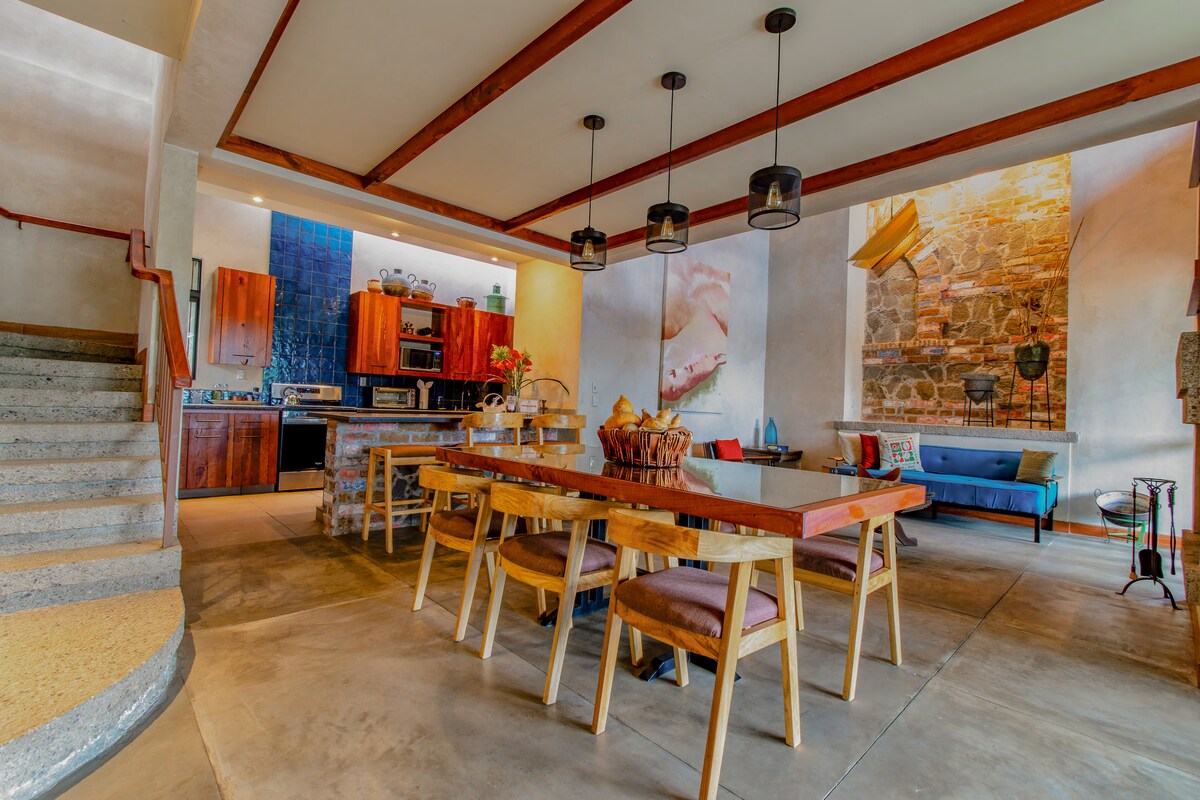 Piemonte Casa, en Concepción de Ataco, da vida a una casa de autor, donde la arquitectura fusiona lo tradicional y lo moderno en espacios cálidos y sofisticados, con mucho arte y luz natural. Tres dormitorios y 3 baños completos, ofrecen capacidad para 7 huéspedes, por lo que es ideal para grupos pequeños que gustan compartir en privacidad con el máximo confort. La cocina abierta, la chimenea en la sala central y la terraza con vistas a las montañas ofrecen exquisitos ambientes para compartir.