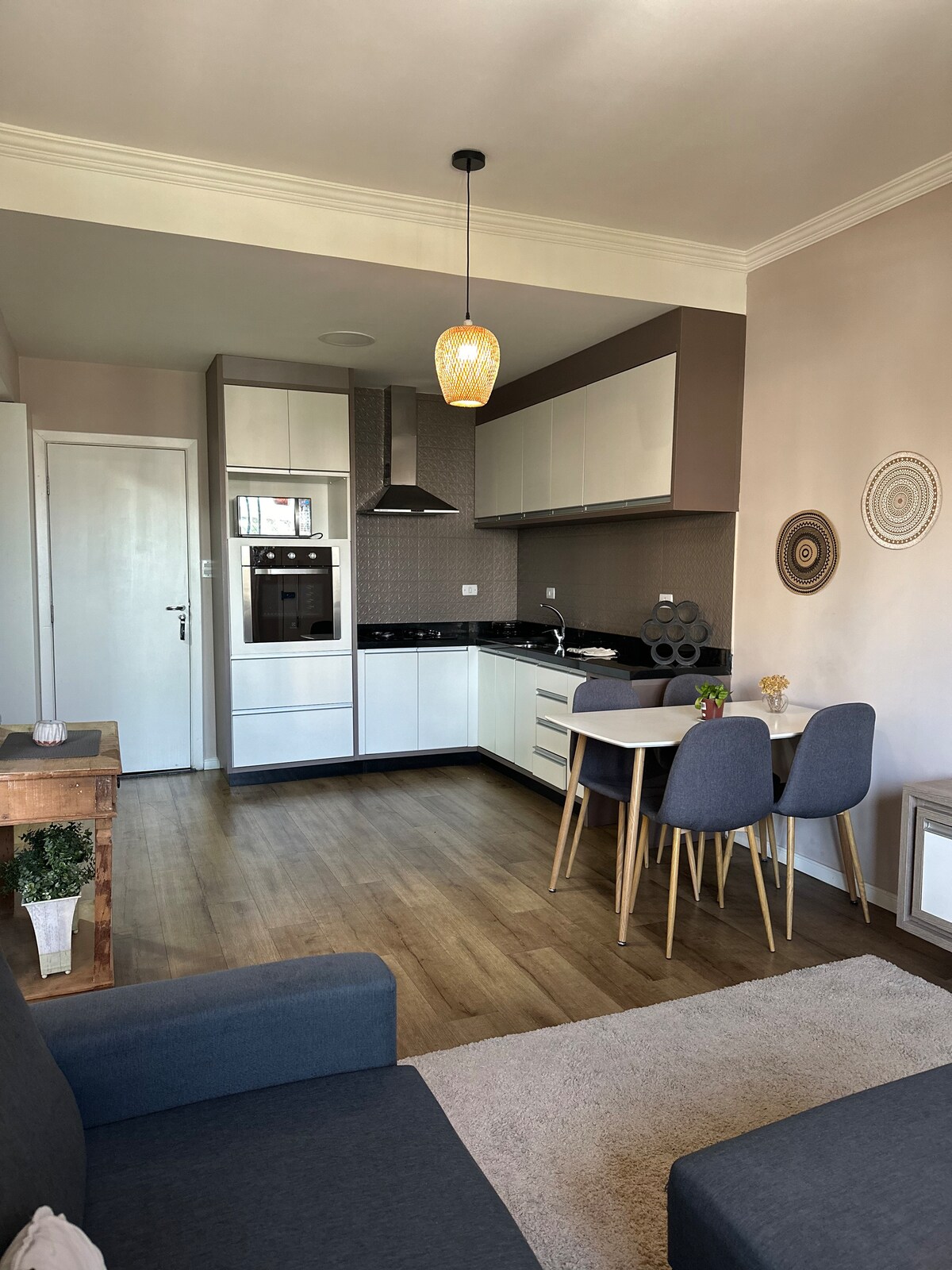 Apartamento confortável e moderno, bem localizado no centro de Alphaville, na Al. Grajaú n°321, (menos de 100m da La ville e da Al. Rio Negro, principal avenida de Alphaville), perfeito para sua estadia, com 2 tvs smart e 2 ar-condicionados (na sala e no quarto), cozinha bem equipada, cama king size e duas redes (na sala e no quarto), limpeza e arrumação de segunda a sábado já incluso na diaria e estacionamento gratuito coberto e descoberto no próprio prédio.