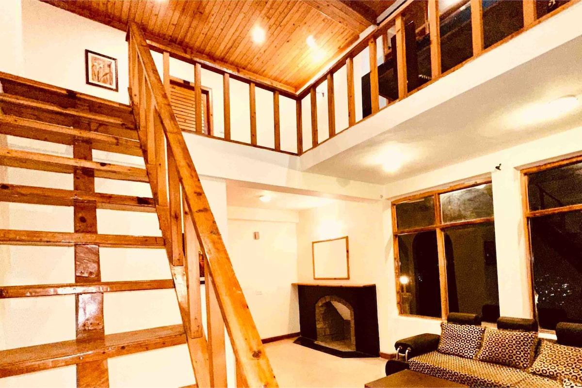 Ubicado en medio de huertos de manzanos y colinas cubiertas de pinos, este exclusivo refugio ofrece vistas panorámicas del histórico castillo de Naggar, de los majestuosos picos nevados del Himalaya y del resplandeciente río Beas, todo ello visible desde el exclusivo balcón de tres lados del departamento. 🛏️ Dos dormitorios espaciosos 🛋️ Un espacio acogedor con una decoración elegante y una sala de estar confortable 🍳 Cocina totalmente equipada para preparar comidas caseras, 🌄 Balcón envolvente con vistas de 360° 🧼 Baños modernos con duchas con agua caliente