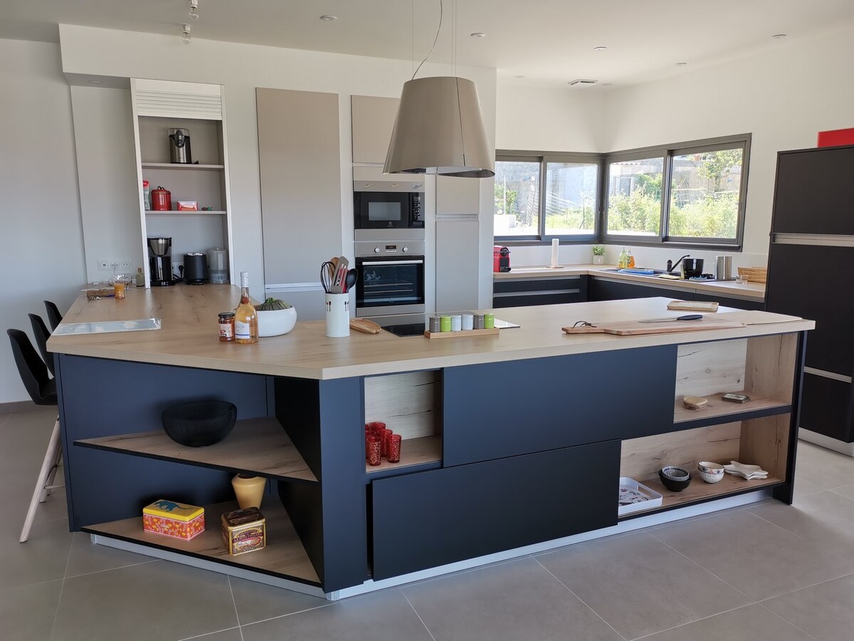 Completamente independiente, situada en un pueblo tranquilo en la orilla sur, Bastelicaccia, a 10 minutos de Ajaccio y de las playas más hermosas de Porticcio. Lago de Tolla y montaña a 20 minutos. Aire acondicionado individual en cada habitación, cocina abierta al salón. Horno de convección, lavavajillas y lavadora, microondas, nevera/congelador, placa de inducción. Salón equipado con sofá con pantalla plana de 102 cm. 2 habitaciones, camas de 140, espejos, armarios empotrados. Wifi gratuito